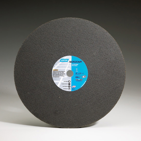 NorZon III RailCut and NorZon III Rail FastCut Reinforced Cut-off Wheels (14", 16") are ideal for high powered, well-maintained machines for fixed rail track cutting.